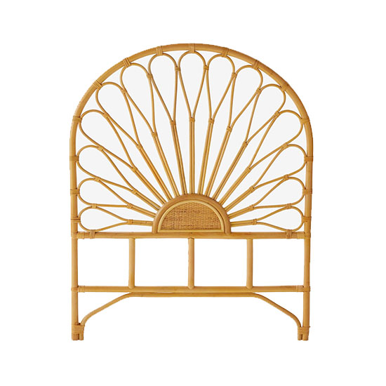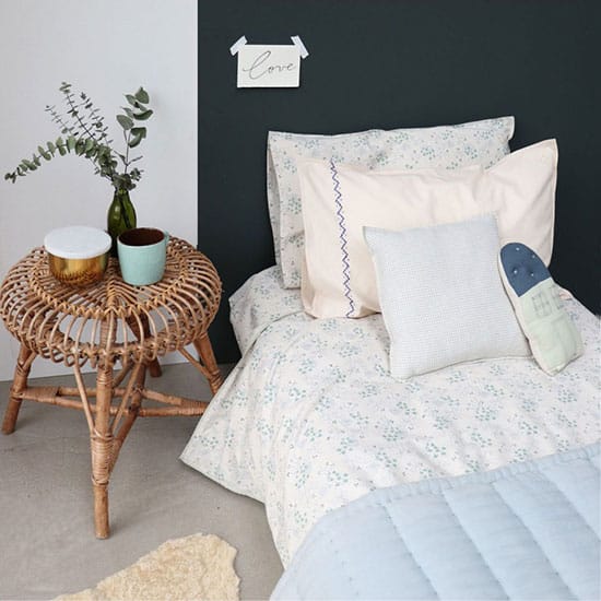 Associé à une tête de lit en rotin, le linge de lit pastel apportera à la chambre un très beau cachet.