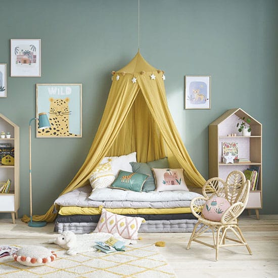 Un ou plusieurs matelas empilés, quelques coussins et ses peluches préférées : votre fillette va adorer s’y prélasser !
