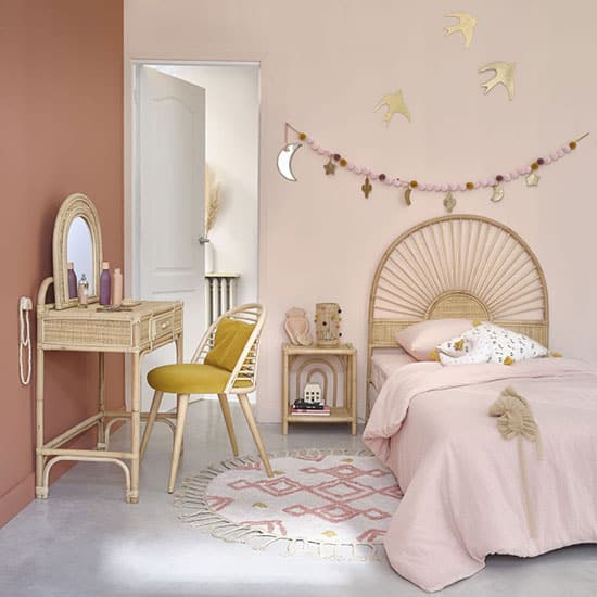 Halte aux clichés : le rose n’est pas prépondérant dans une chambre de petite fille.