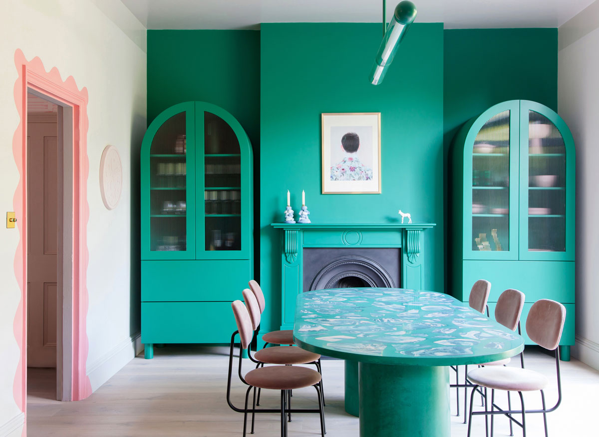 Déco de salle à manger atypique et colorée en vert et rose – 2LG Studio