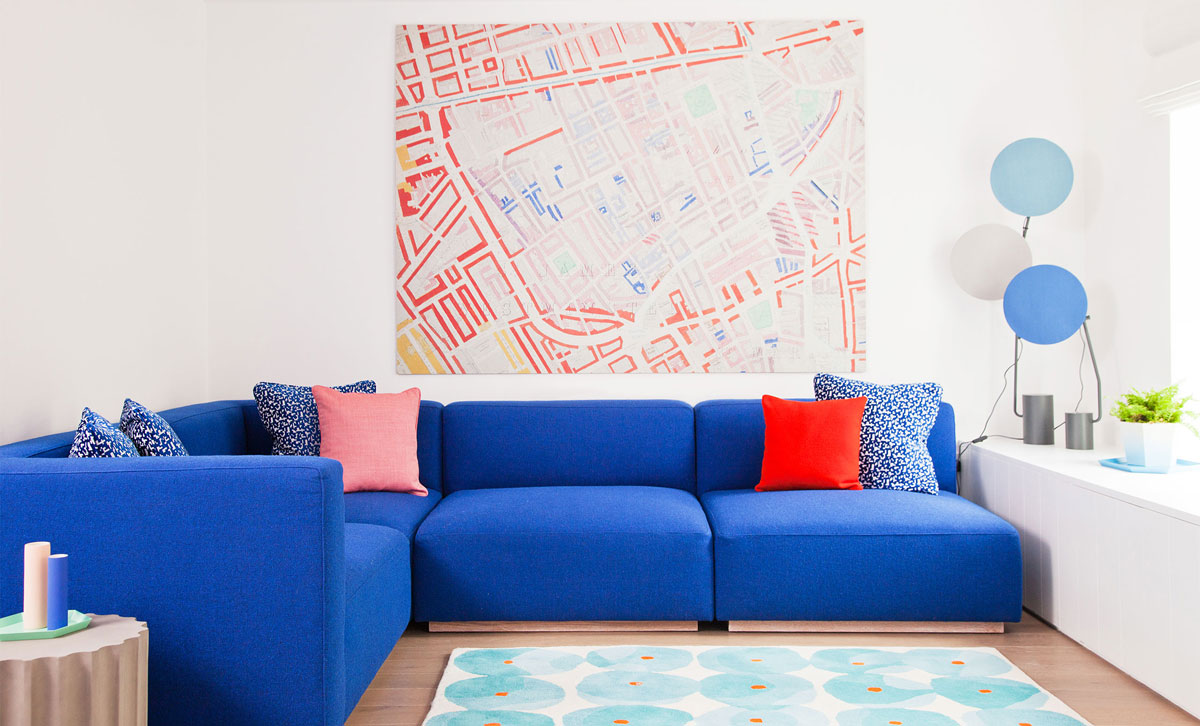 Base blanche et couleurs franches pour un salon original