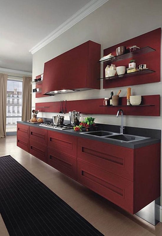Miser sur une cuisine lie de vin est des plus judicieux pour faire de cette pièce un endroit convivial et empreint d’originalité.