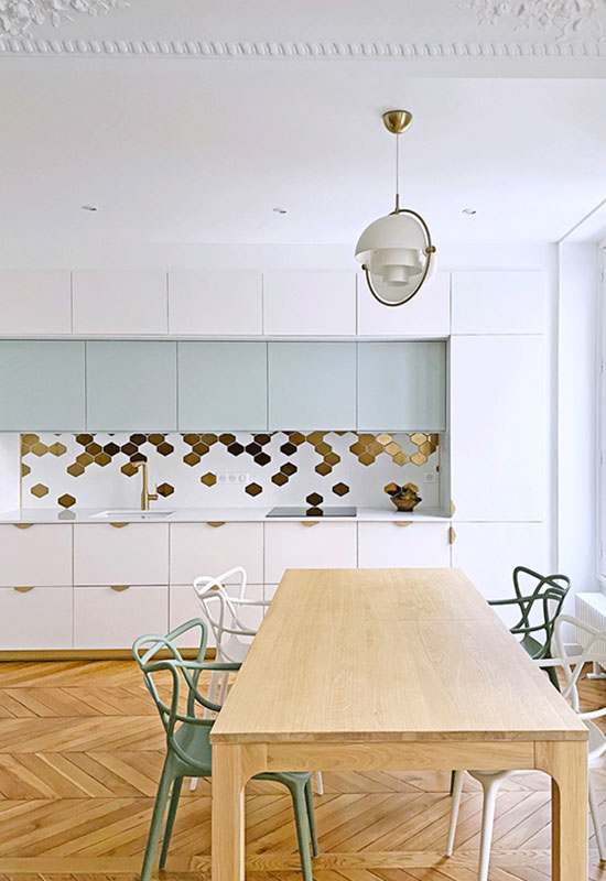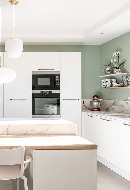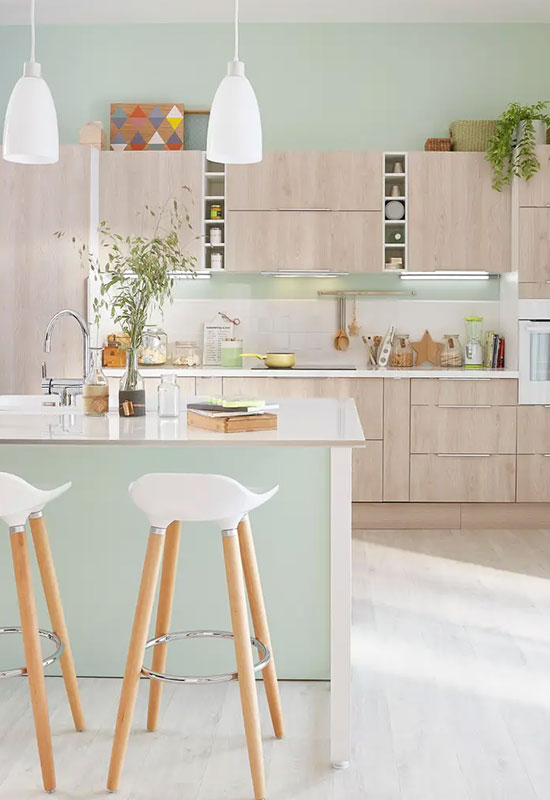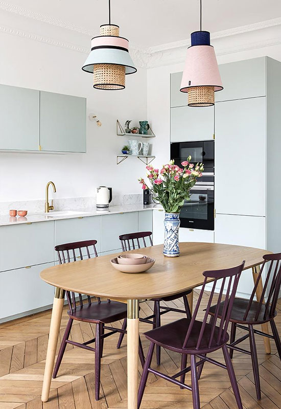 Les teintes pastel sont en vogue et ont toute leur place dans la cuisine.