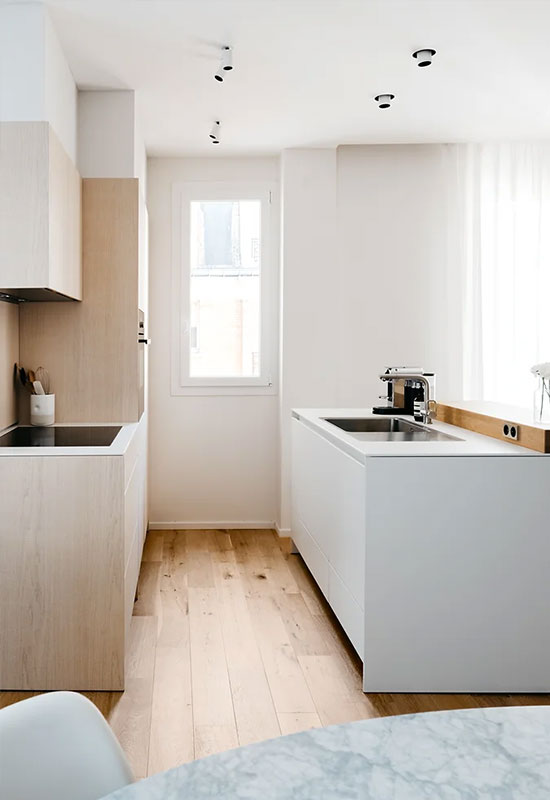 Elégante et design, la déco de cuisine minimaliste rime avec belles matières et sobriété.