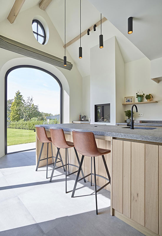 Ouverte sur la salle à manger ou sur le séjour, elle est souvent dotée d’un îlot central ou d’un comptoir bar, fonctionnel et convivial.