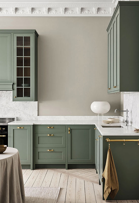 Teinte naturelle par excellence, le vert apporte fraîcheur et légèreté dans la cuisine.