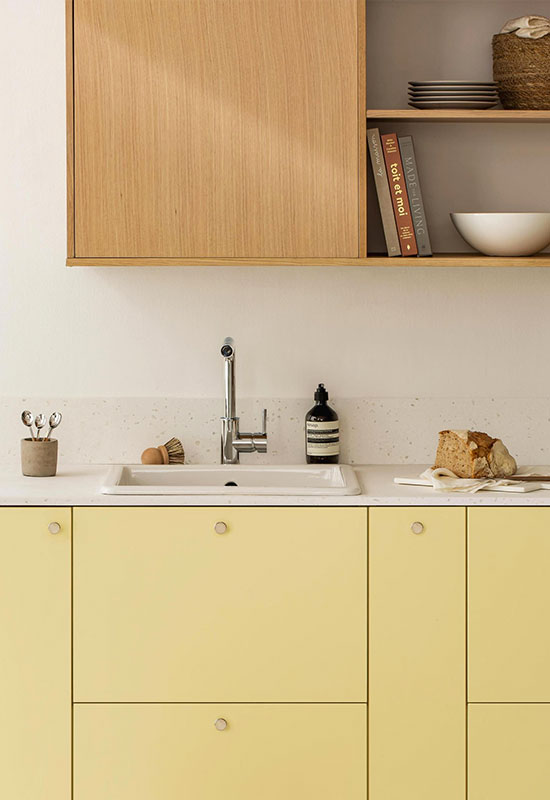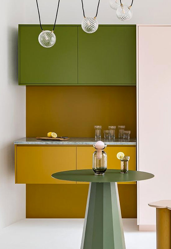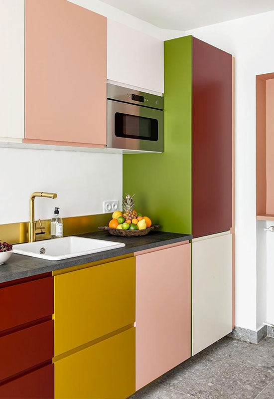 Osez le mélange des coloris en version mix and match avec des teintes différentes sur les façades, les murs et le mobilier !
