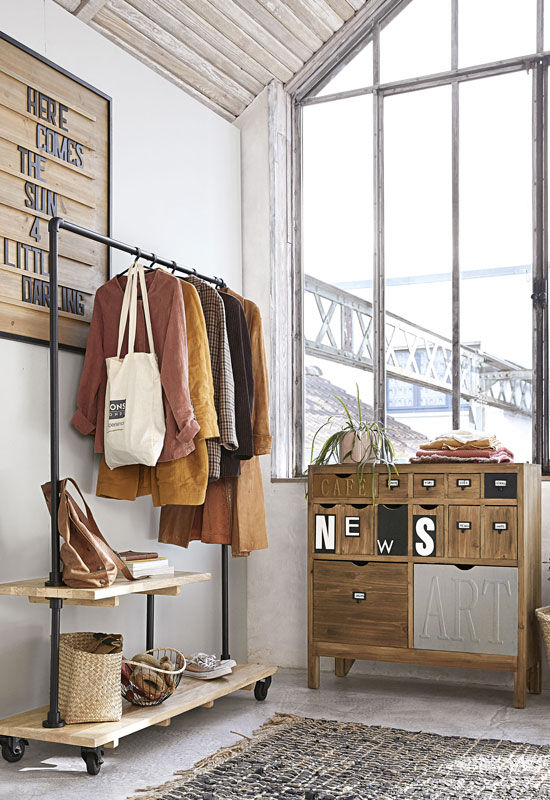 Vous pouvez également opter pour un portant à roulettes pour un look industriel immédiat !