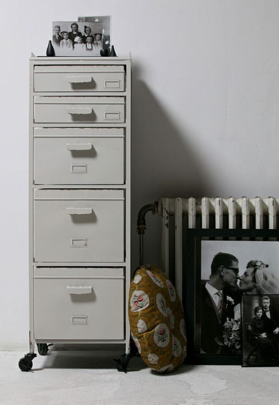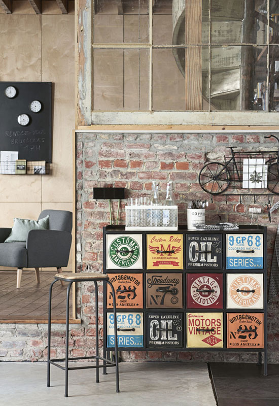 Un meuble de métier, type établi ou casier métallique, est toujours une pièce qui donne le ton !