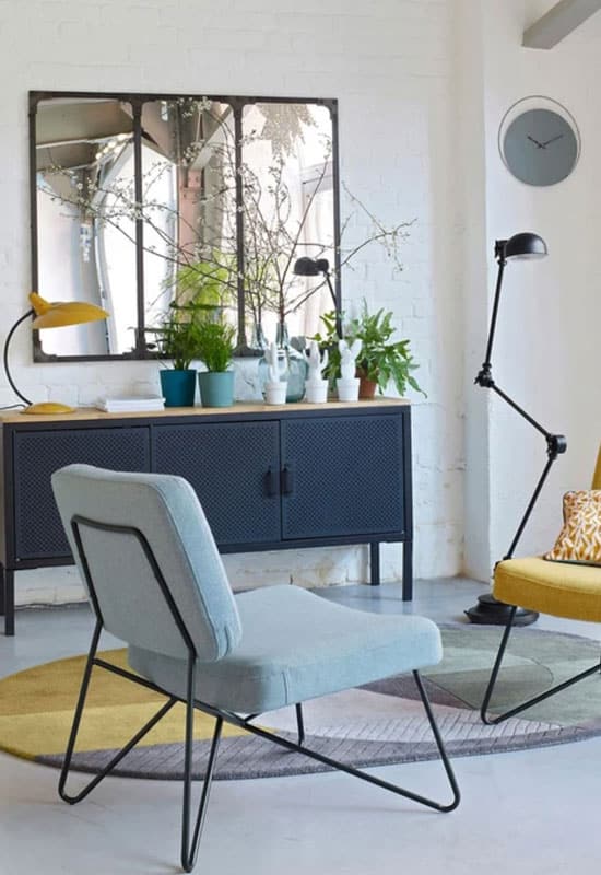Autre solution vraiment stylée pour animer votre intérieur industriel et lui donner une note personnelle ? La couleur bleue !