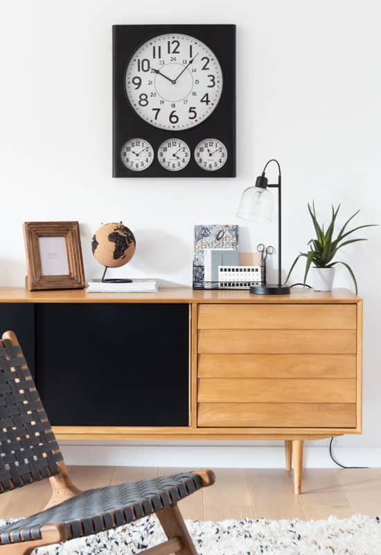 Un grand miroir style verrière ou une horloge de belle taille au look horloge de gare et le tour est joué !