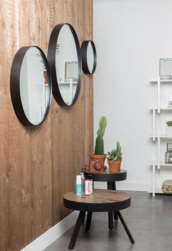 La tendance industrielle aime les miroirs triptyques style barbier ou encore les grands miroirs ronds esprit hublots.
