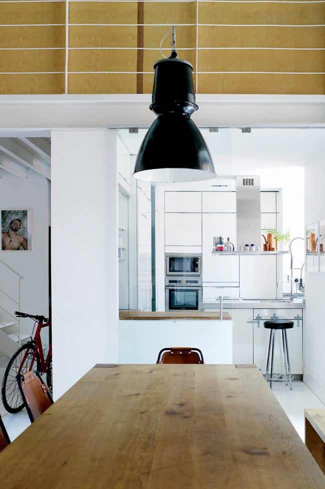 A noter que cette dernière accueille la très bling bling lampe Beretta de Philippe Starck, dont les aficionados auront bien évidemment remarqué la grande sœur dans le séjour !