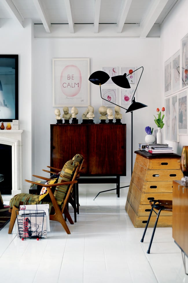 Des pièces de mobilier vintage au caractère bien trempé côtoient moult œuvres d’art.