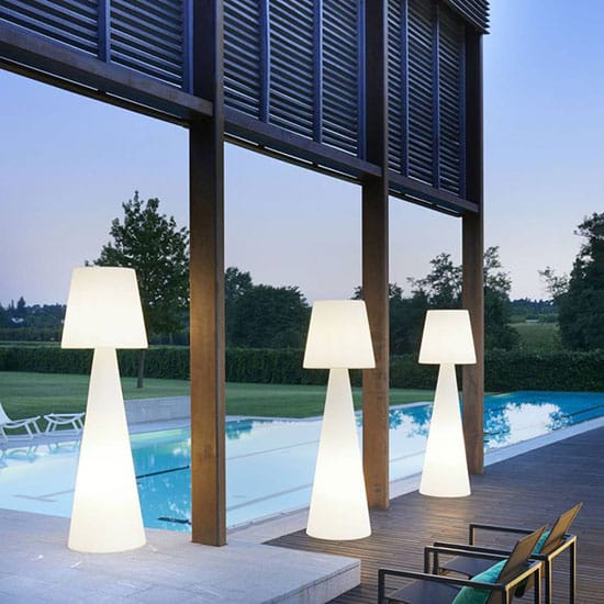 Fixe ou mobile, le lampadaire extérieur peut tout aussi bien servir d’éclairage de terrasse principal ou de source lumineuse d’appoint, selon l’usage.