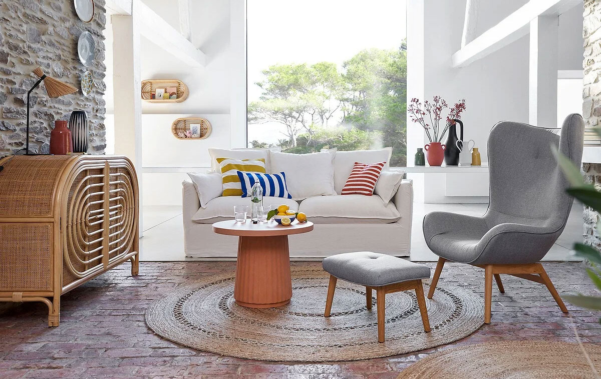 Son style cocooning s’accorde parfaitement à un salon d’inspiration scandinave, japandi ou même contemporain.