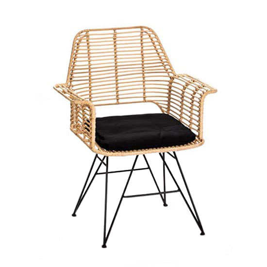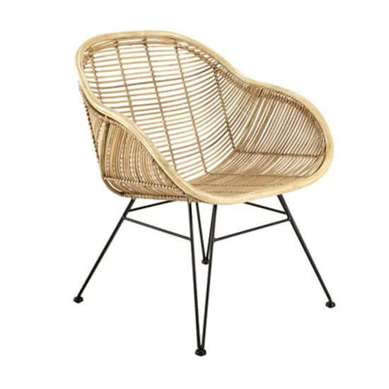 Ses pieds filaires et sa structure en rotin clair lui confèrent un style doux et léger.