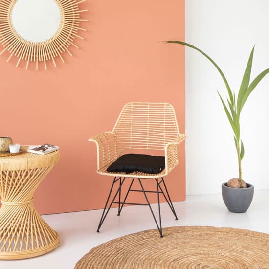 Pour relever la teinte chaleureuse du rotin, installez votre fauteuil devant un mur terracotta.