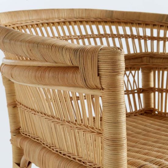 Ce fauteuil 100 % en rotin naturel se démarque par la forme de son assise accueillante en forme de coquille.