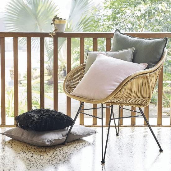 Dans un salon en rotin, agrémenté d’un coussin, il apportera chaleur et douceur à la déco.