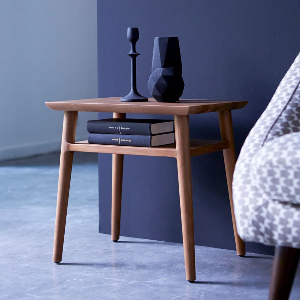 Le teck massif apportera une touche naturelle et chaleureuse dans votre chambre, si vous le préférez comme table de chevet design !