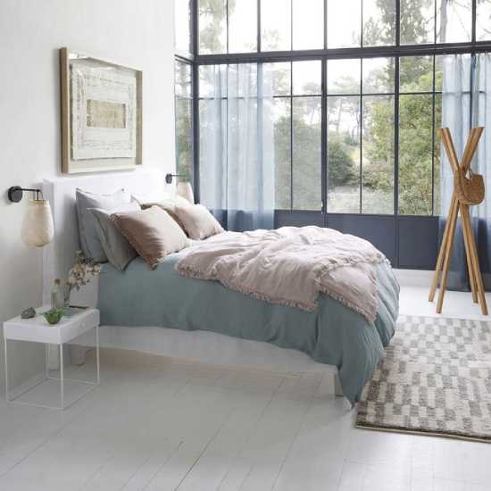 En lin lavé, cette housse de couette offre un rendu légèrement froissé et présente l’avantage de ne pas avoir besoin d’être repassée !