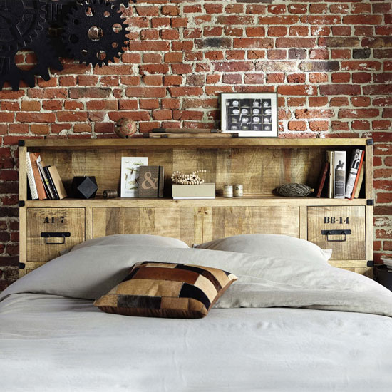 Et l’idée fonctionne tellement bien que des enseignes déco proposent même ce type de tête de lit : on range la boîte à outils !