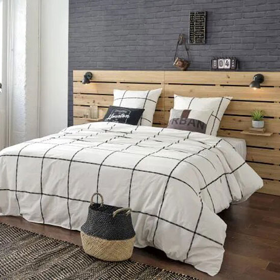 Dans un espace nuit tout en sobriété, un modèle au simple jeu de motifs répétitifs viendra égayer la déco en un instant.