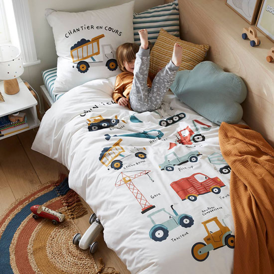 Motifs fleuris, animaux ou petits aventuriers, les housses de couette enfant signées Vertbaudet racontent des histoires dès l’heure du coucher.