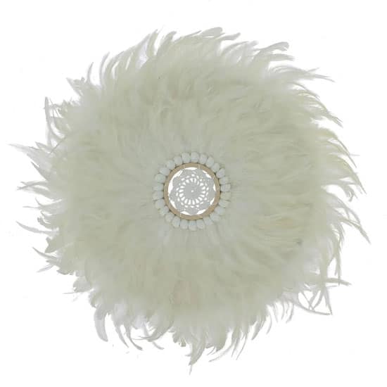 Les plumes associées à la texture du coquillage apportent une touche ethnique et raffinée pour décorer votre intérieur.