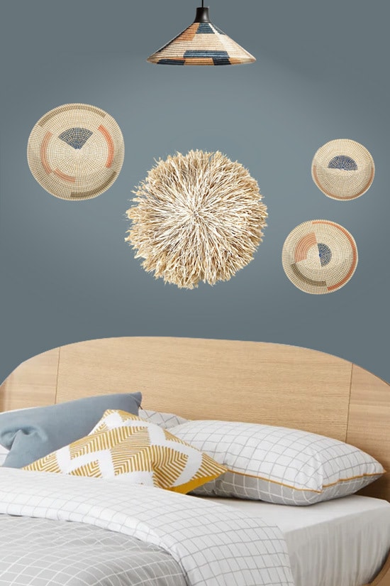 Compléter le look naturel d’un modèle en fibres végétales avec un panier mural ethnique ou un miroir en rotin.