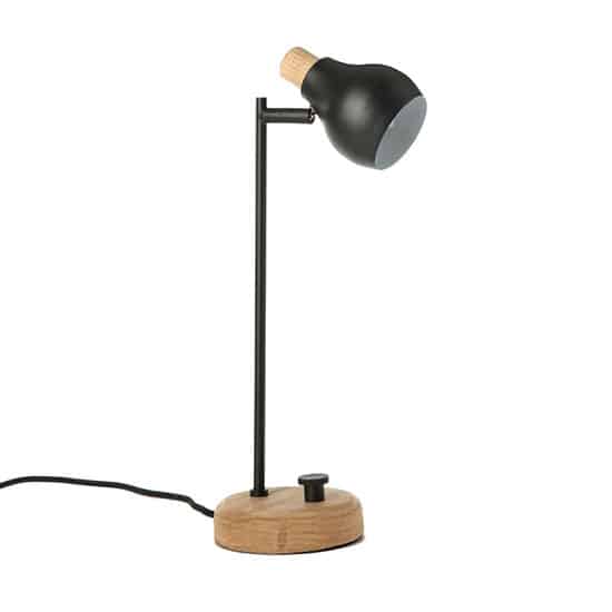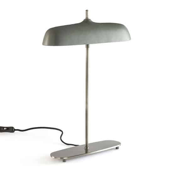 Idéale sur un plan de travail en bois foncé, cette lampe de bureau vintage apporte une touche élégante.