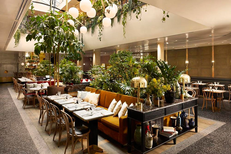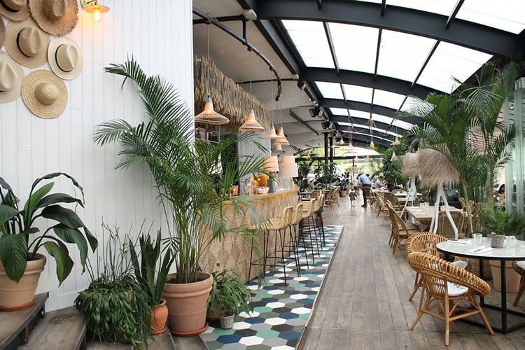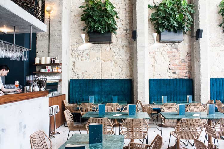 Enfin, les plantes vertes seront un allié de choix pour réchauffer l’ambiance d’une note naturelle et recréer l’atmosphère jardin de ce bistrot.