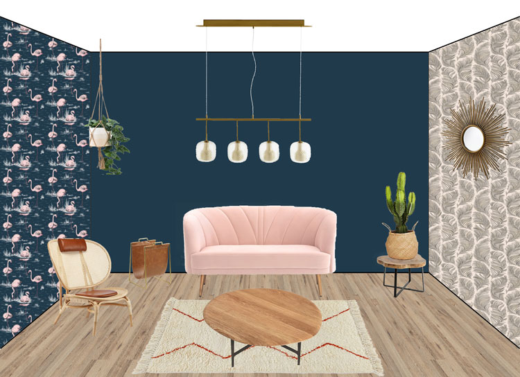 Commencez par planter le décor, à renfort de tapisseries imprimées ou de peinture bleu canard pour les murs, qui y gagneront en profondeur et singularité.