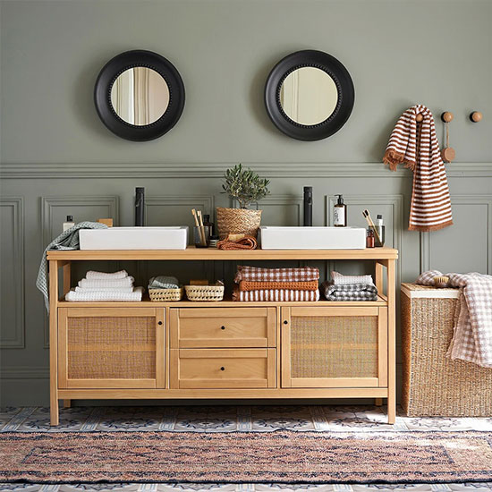 N’oubliez pas de placer un joli panier à linge en bambou à proximité pour faciliter la gestion du linge sale !