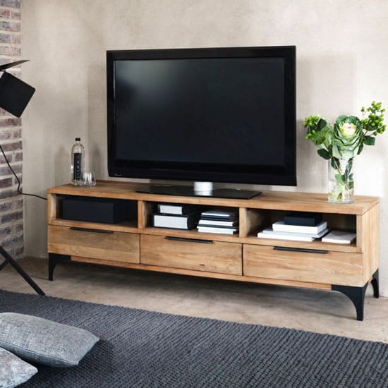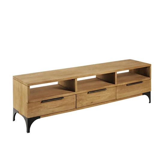 Ce meuble tv industriel est tout ouvert : une fois votre poste installé sur la partie supérieure, vous disposerez d’une belle surface pour disperser vos effets personnels.