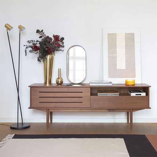 Ce meuble tv scandinave reprend les caractéristiques du design des années 50 avec ses lignes épurées.