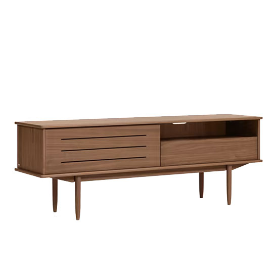 De belle facture avec sa structure en noyer, ce modèle tv séduit par son côté vintage.