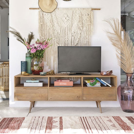 Les veinures apparentes du bois de manguier apporteront charme et authenticité à votre salon.