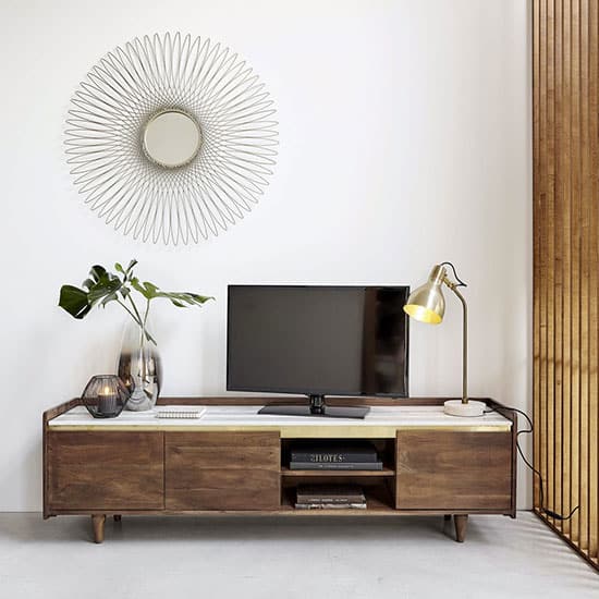 C’est le cas du meuble tv vintage qui, une fois agrémenté d’une note de marbre prend une toute autre dimension déco.