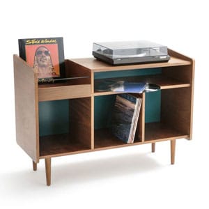 Look rétro assumé pour ce meuble de rangement pour 33 tours proposé par La Redoute Intérieurs.