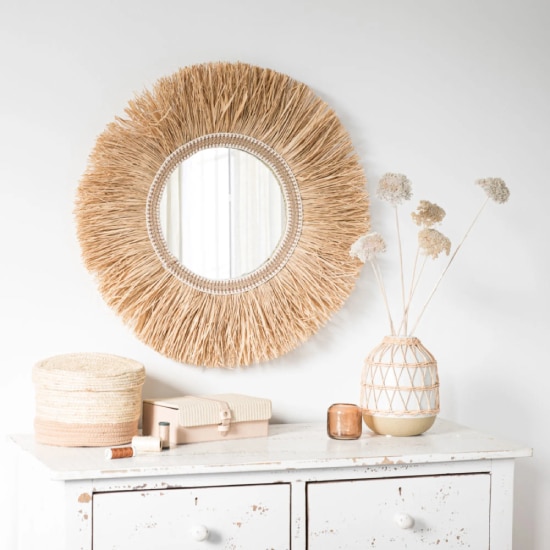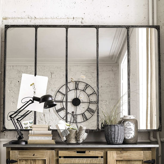 Pour agrandir visuellement l’espace, rien de tel qu’un beau miroir Maisons du Monde !