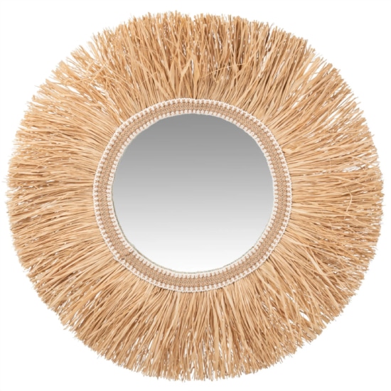 La singularité est de mise pour le miroir Ribolla, car il en arbore les lignes, associées à du raphia naturel.