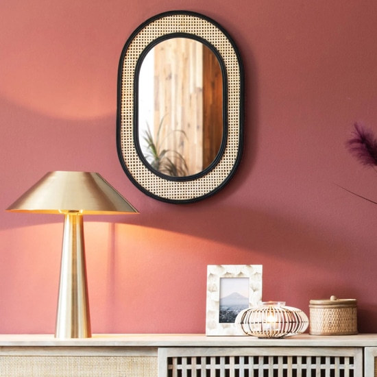 Le miroir oval Jambi et son cannage en bambou fera, grâce à ses courbes noires, l’unanimité dans une petite entrée.