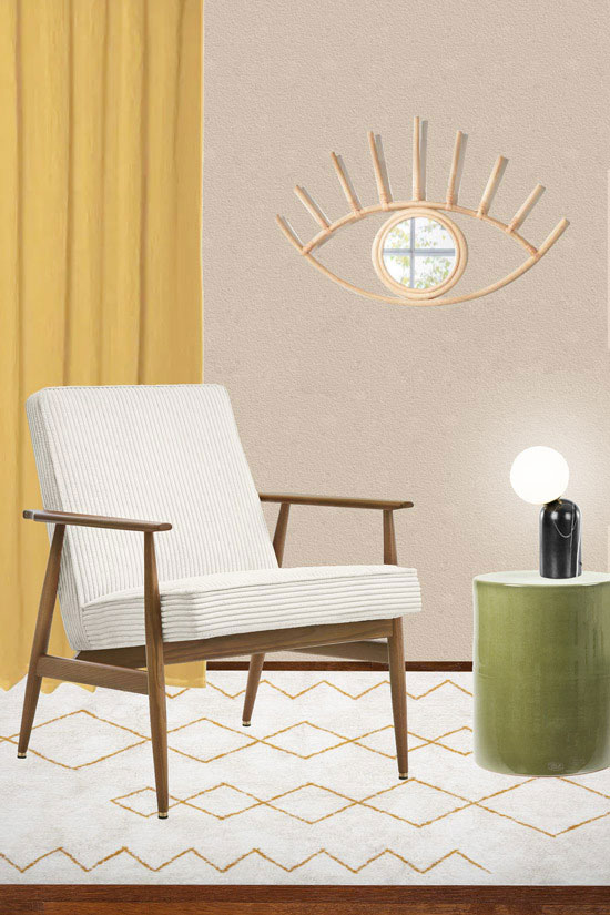 Associé à un fauteuil en velours et à un tapis ethnique, il donnera un esprit cosy à la pièce.