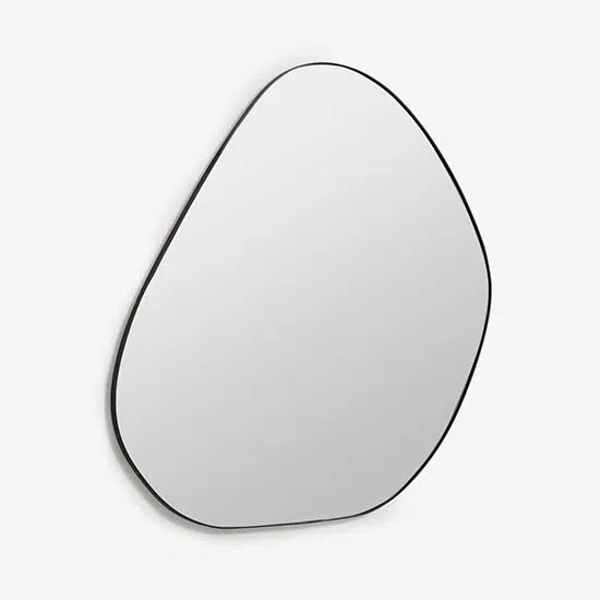 Ce miroir asymétrique sera magnifié dans une déco Japandi, coordonné à un buffet en bois et à un fauteuil bouclette.