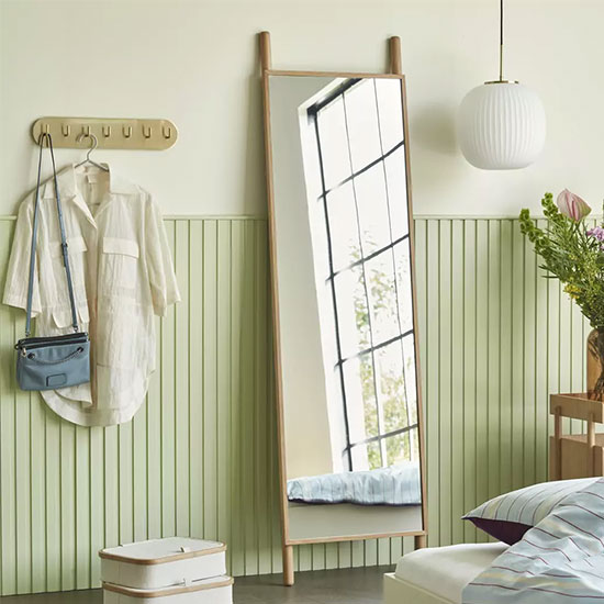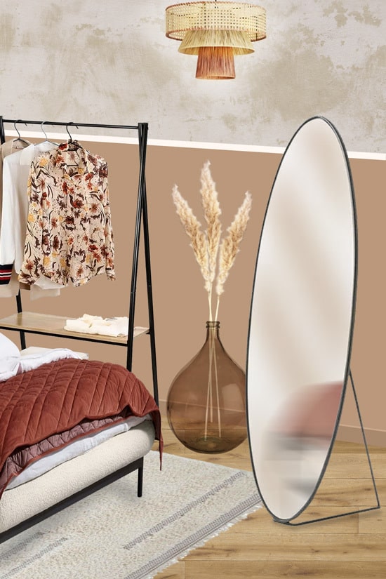 Au côté d’une armoire parisienne ou d’un portant à vêtements, un miroir sur pied sera pratique et élégant.