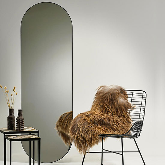 Description : Un grand miroir à poser au sol, de forme ovale, intemporel et élégant.