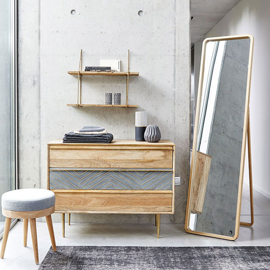 Avec une structure en bois et un verre miroir brut, il est le modèle idéal pour compléter une déco scandinave.
