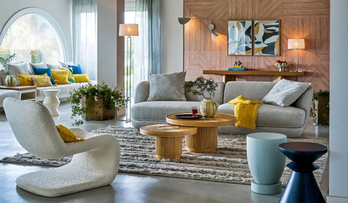 Cette saison AMPM zénifie encore plus le salon grâce à la douceur des matières naturelles et des formes organiques.